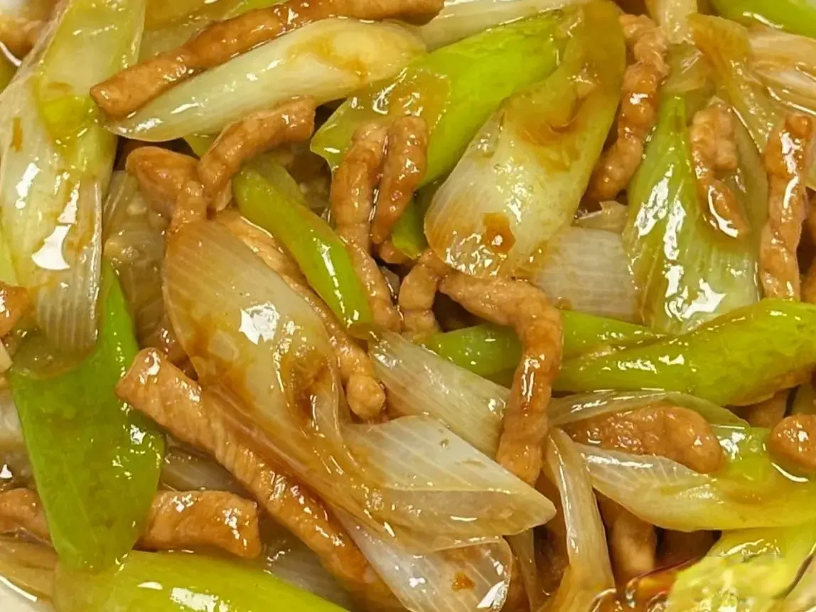 4、最后加入炒好的肉丝一起翻炒均匀入味,即可出锅开吃。