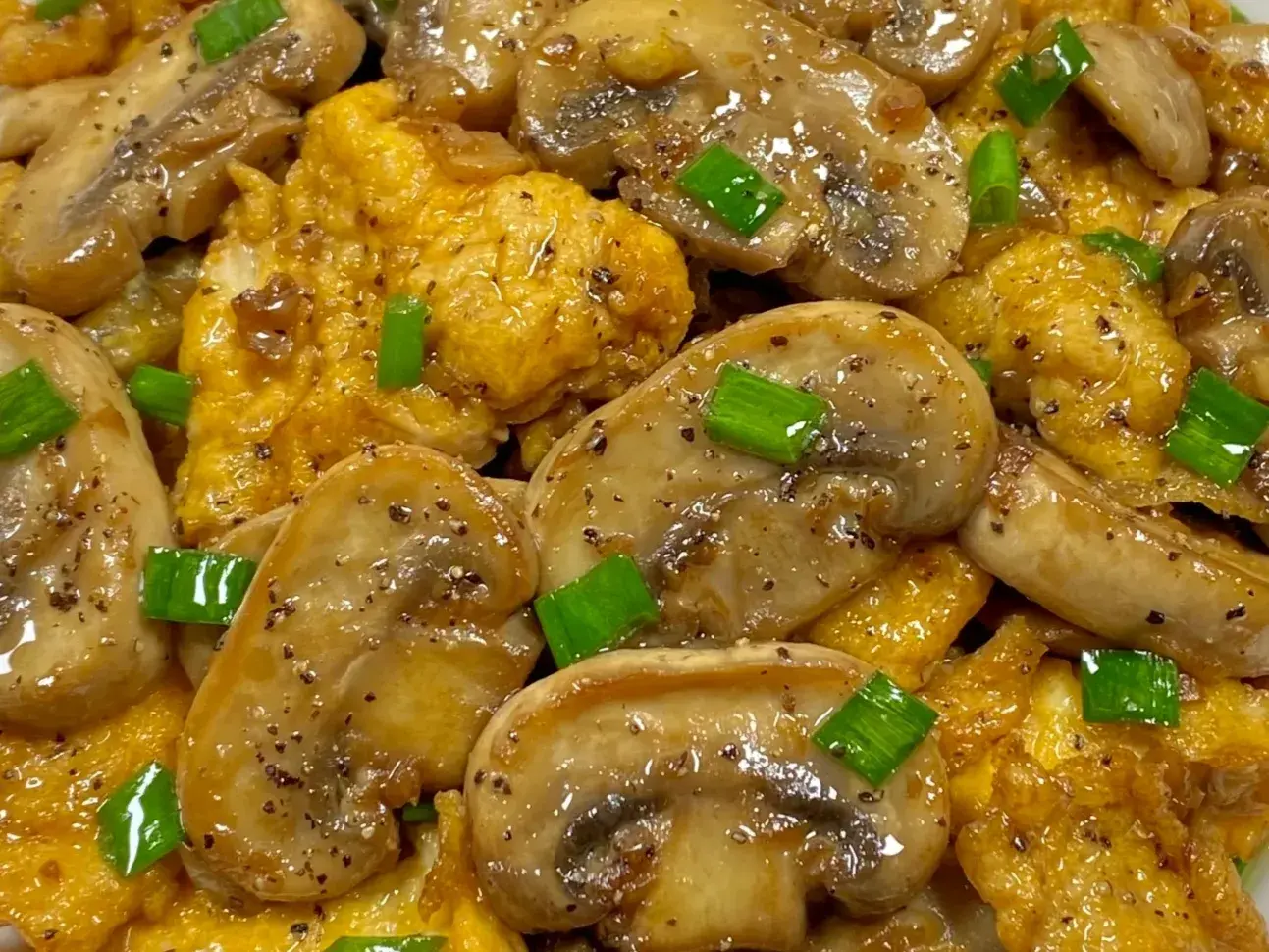 八、口蘑炒鸡蛋准备食材: 口蘑、鸡蛋、葱蒜末、黑胡椒碎。